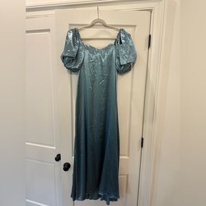 Caroline Constas Palmer Dress in blue size M. Tags still on. Slight pulls in the silk but nothing too major at all. Was purchased from another posher where I fixed the rip but I’m reposhing because I didn’t wear it to the event I had