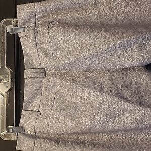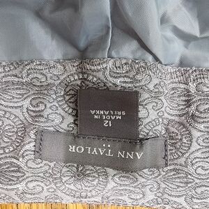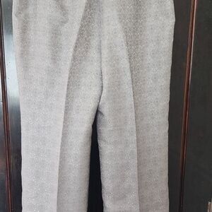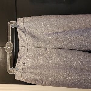 These size 12 Ann Taylor's gray dressy pants with metallic accents are a fun and sophisticated addition to your wardrobe. Crafted with a classic straight-leg cut and full lining, these pants offer a timeless cut with a touch of playfulness to complement your classic wardrobe. The subtle design adds a touch of playful elegance, making them perfect for dressy occasions. A versatile gray shade ensures they pair effortlessly with a range of tops and accessories. Length 41" , Inseam 31", see photos.