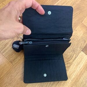 Kipling Pixi Bifold Wallet Snap Closure Card Slots Zip Pocket Black Tonal