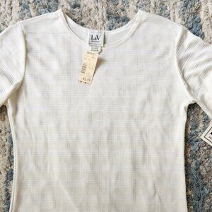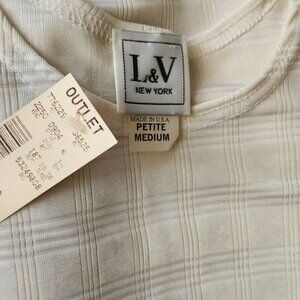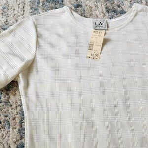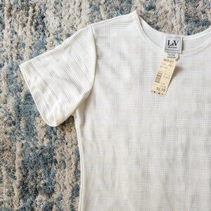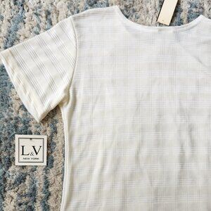 White Plaid Stripe Short Sleeve Blouse Medium Petite