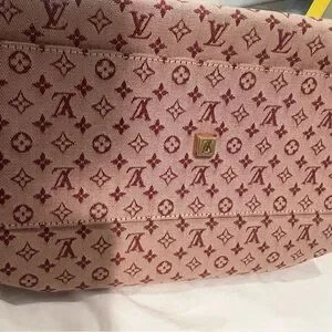Louis Vuitton Pink Denim with Burgundy Travel Bag with Iconic Monogram