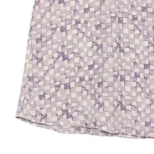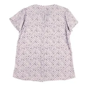 This lightweight and flowy fabric has a relaxed fit with a water color checker print. Short flutter sleeves and a V-neck.