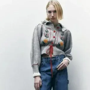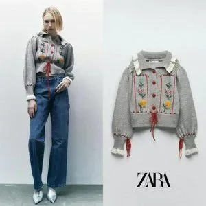 ZARA JACQUARD COLLARED FLORAL KNIT CARDIGAN