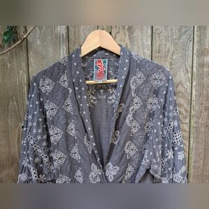 Johnny Was Grey Embroidered Kimono Wrap Top