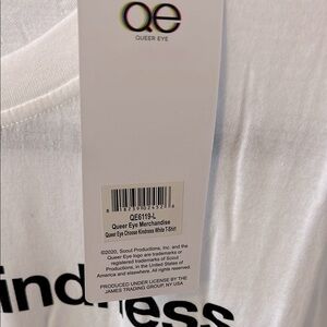 White t-shirt with 'Queer Eye' logo. Stylish and modern design. 100% cotton.