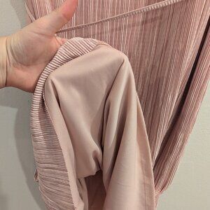 ANNE KLEIN Crinkled Satin Blush Dress 16 Sleeveless Waist Tie Midi Length --- Soft, muted pink --- Micro Pleats