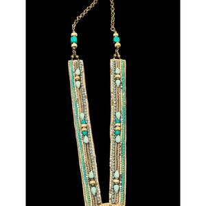 CHICO'S Boho Statement Necklace – Turquoise Fringe Tribal Beaded Medallion