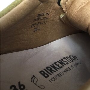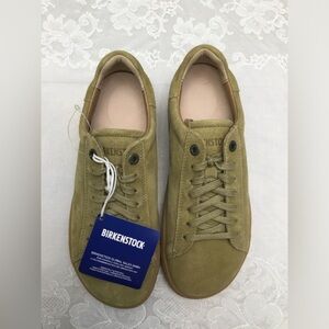 Experience the perfect blend of style and comfort with Birkenstock's green sneakers. Crafted with a sleek, minimalist design, these shoes feature a monochromatic green suede upper and a clean, low-top silhouette. The traditional lacing system and light-colored midsole add to their versatile appeal, making them ideal for any casual occasion.