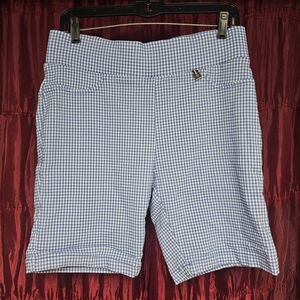 Stylish blue gingham checkered shorts. Perfect for casual outings. Stretchy.