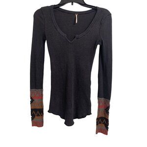Thread & Supply L Gray Button Up Shacket Aztec Knitted Sleeves 4 Pockets