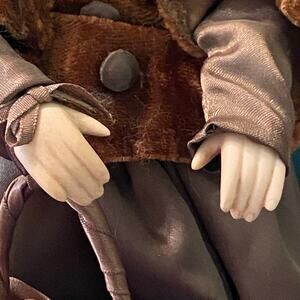 Vtg Porcelain Doll Brown Eyes Lashes Brunette Wavy Hair Shoes Umbrella Stand