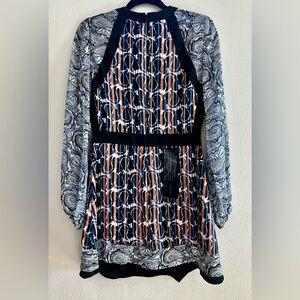 Super cute dress with great patterns. Slightly sheer sleeves. Lined dress. Concealed black zipper. New with tags.