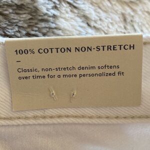 New with tags. Relaxed hip and leg. Non-stretch. 100% cotton.