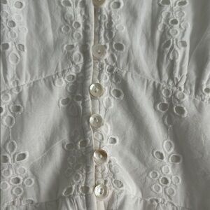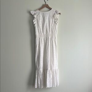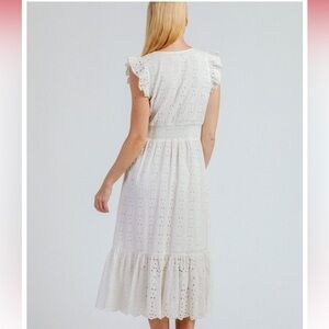 If you want effortless style then add this gorgeous eyelet dress now! Easy to dress up or down with sneakers. The dress is made of 100% GOTS certified organic cotton. It is breathable and perfect for trips. The dress is fully lined for coverage. Features flattering seaming & smocked back waist for great fit. Midi length at 47” from shoulder. Size medium will accommodate sizes 4-6. Excellent condition and only worn once.