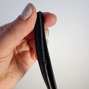 Elegant Coach wristlet with a black stripe. Includes a convenient wrist strap.