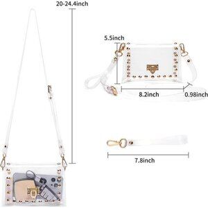 ✅ New Product ✅ 【Stadium Approved & Lightweight】MOETYANG Golden Clear Purse is specially designed for stadium or sports events, completely meets Stadium Tournament Bag Policy (Stadium approved dimension is 12x6x12 inch), this transparent purse can help sports fans pass the security check quickly and easily, perfect purse for gameday of venues requiring a clear bag 【Plenty Space & No Smell】8.5x0.6x5.5 inch, one main access compartment, this clear crossbody purse fits for iPhone 13Pro Max, sun glasses, keys, lipsticks, pens, tickets, plenty room for stadium necessities. The clear purse for women is made of 1mm thickness PVC, no toxic and smell, waterproof and easy to clean 【Adjustable Shoulder Strap & Stylish Rivet Decor】This small clear purse is stylish and fashion, you can wear it as clear shoulder bag, clear clutch, clear crossbody bag, even a 5'8'' lady can wear it as clear crossbody purse, matching all your clothes and shoes,can be dressy or casual. And you can wear this clear crossbody bag, happy to put your hands up,cheering on your favorite team, enjoy sports games or music 【Practical & Sparkle for All Occasions】This clear stadium bag crossbody will be handy for all those sports events, gamedays, summer vacations, concerts and flights, shopping, any outdoor activities and daily uses, it's also a perfect present for girlfriends, daughter, mother, classmates or family members MOETYANG always focuses on well-made products, and offer you enjoyable shopping experience。Don't
