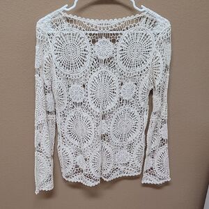 This relaxed sweater showcases a stylish crochet design for a versatile look. The crew and scoop neck options ensure a comfortable fit, making it a perfect choice for casual outings. Embrace a trendy aesthetic with this unique piece.