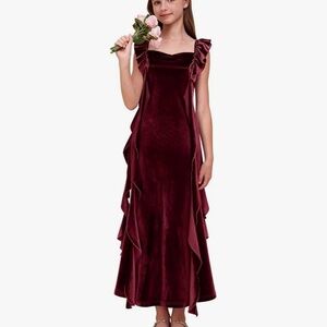 Elegant burgundy midi dress by Gianni Bini. Features intricate embellishments and sheer sleeves. Perfect for special occasions.