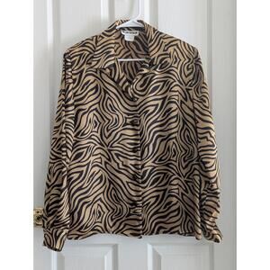 Joan Leslie Blouse Womens Size 10 Zebra Satin ButtonUp Vintage Work Statement Chic