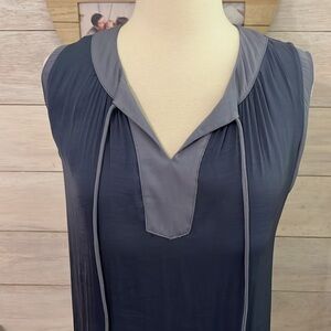 This elegant sleeveless top features a stylish blue design, perfect for any occasion. The soft fabric and chic cut make it a versatile addition to your wardrobe. Front flat under arm side to side 19.5". Length 25".