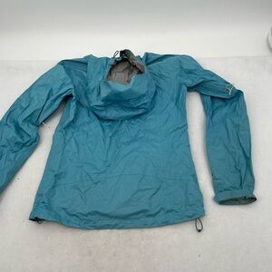 MOUNTAIN HARD WEAR Women’s Light Blue Hooded Rain Jacket Coat size: Small