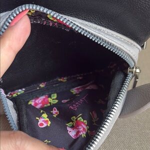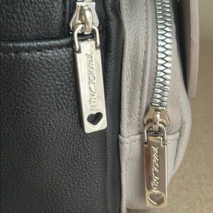 Betsey Johnson Cute mini backpack with a dog face design. Features black and gray colors with white accents. For French Bulldog Frenchie or Boston Terrier lovers! Condition excellent