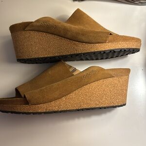 Birkenstock Papillio Tan Suede Wedge Mules