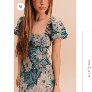 Chic floral dress with puff sleeves. Features a blue and white pattern. Fits more like a small/medium. Only worn once