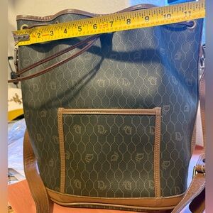Christian Dior Leather Bucket Shoulder Bag Honeycomb Logo Authentic