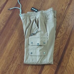 Stylish tan Ecko cargo pants featuring a drawstring waist and multiple pockets.Size L