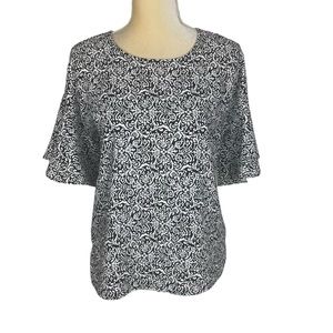 Features: Tiered silhouette flows easily on the body, long sleeves with elastic cuffs, classic collar with functional button placket, pull-on fit with side pockets