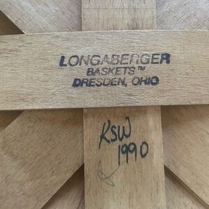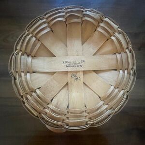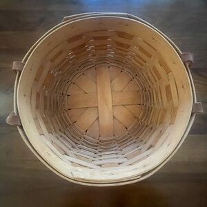 Vintage 1990Longaberger handwoven round basket with leather handles.