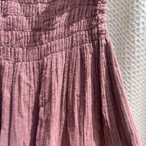 Lovely full length cotton gauze skirt in Desert Rose. Flexible sizing: 26”-44” Waist length. See forth picture for slight wear on fabric in only that area.