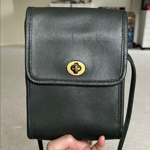 This is a coach rambler legacy bag in black with gold hardware. It was made in Mexico in 1990. It has an adjustable wide strap. Condition is excellent.