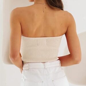 This elegant cream strapless top is perfect for any occasion. Its chic design offers a sophisticated look. Pair it with your favorite accessories for a complete outfit.