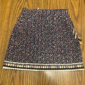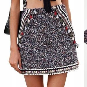 ZARA Multicoloured Pompom Tweed Fringe Skirt