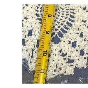 This vintage oval doily is a beautiful addition to any collection. Handmade with fine crochet work, the doily measures 9 inches by 11 inches and features a classic white color. Perfect for use in the kitchen or as a decorative piece, this doily is sure to impress. The doily's brand is handmade, making it a unique and special item for any collector. Its type is a doily, ideal for use on tables or shelves. The oval shape adds character and style to any space. Its features include intricate crochet work, showcasing the attention to detail put into its creation. This doily falls under the category of collectibles, linens, and textiles, specifically kitchen linens and textiles.