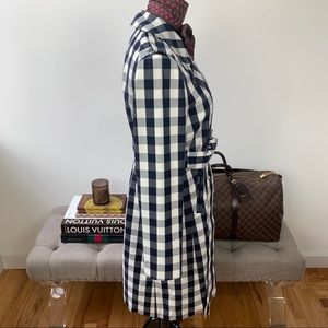 J. Crew Icon Trench Coat Jacket Gingham Check Blue & White Size 2 NWT