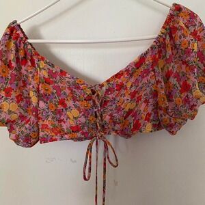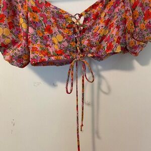Gorgeous Wild Fable Floral Crop Top w/ a lace-up back Size Large