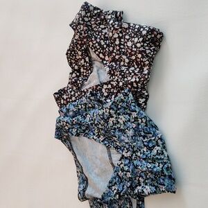 Dainty floral pattern - one in tones of blue and pink, one in black pink and purple