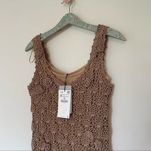 NWT Zara Tan Handcrafted Crochet Maxi Dress