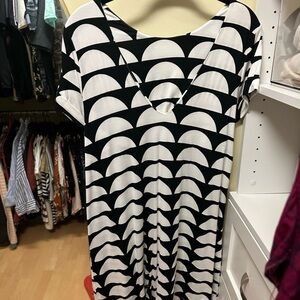 Embrace casual elegance with the Ava Sky Midi Dress, featuring a striking black and white geometric pattern. This dress boasts a comfortable crew neck and short raglan sleeves, making it perfect for laid-back outings. Its versatile design ensures it can be effortlessly styled for various occasions.