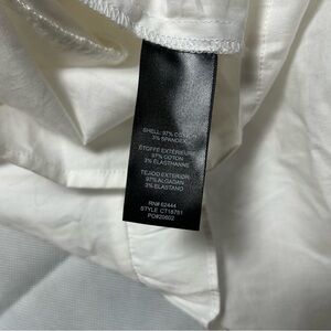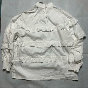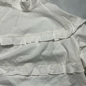 Nicole Miller white ruffle 3/4 sleeve much neck top NWT size small. Lay flat measurements pit to pit 20 1/2, sleeve length 22, and length of top from shoulder to bottom of hem 24 inches.