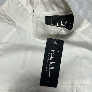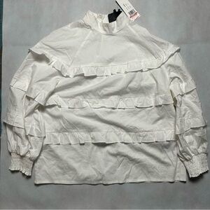 Nicole Miller white ruffle 3/4 sleeve much neck top NWT size small