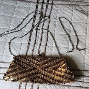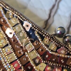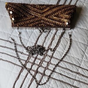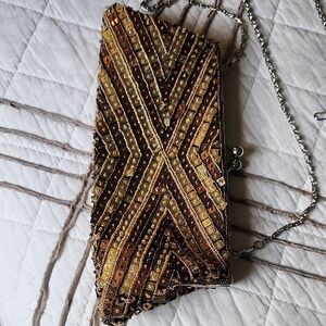 Gold and Brown Beaded Evening Clutch