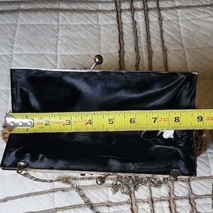 This exquisite clutch showcases a beautiful blend of gold and brown beads, perfect for elevating your evening attire. Its shimmering design adds a touch of sophistication to any special occasion.