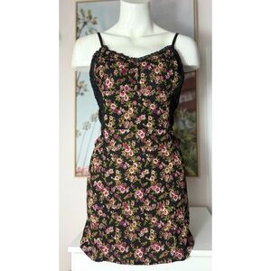 Free People Intimately Black Floral Lace Mini Dress Chemise Slip Size Large Y2K