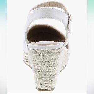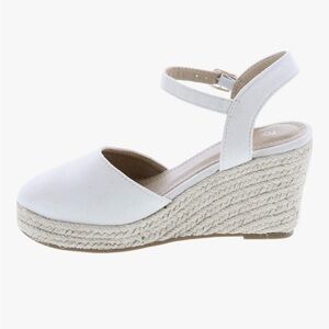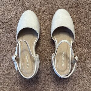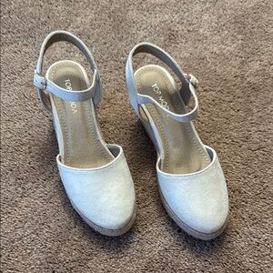TOP Moda natural color closed toe buckle strap espadrilles sandals. Faux suede closed toe and strap with gold tone buckle. Woven look wedge heel with rubber sole. Size 7. NEW! Never worn