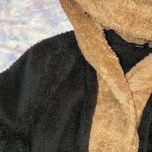 Very soft! Worn less than five times. Great condition- still soft. Nice big cozy hood. 22” from pit to pit. 34” from shoulder to hem.