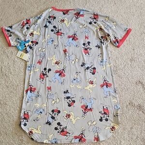 Charming nightshirt featuring Mickey and friends. Red trim adds a playful touch. Ideal for relaxation.